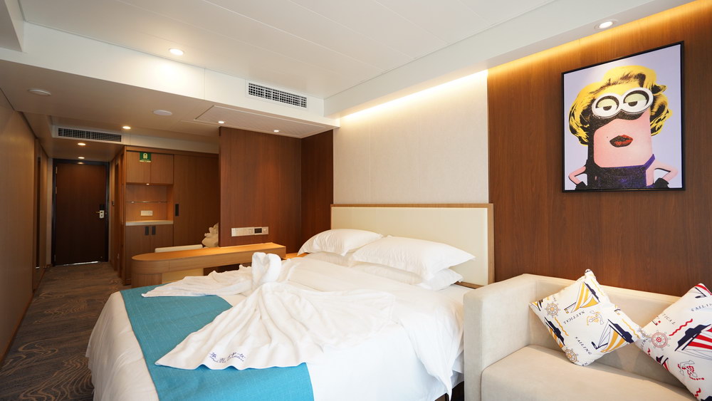 华夏6号游轮是2026年新船,船达17000吨,载客人数650人,华夏6号是目前长江峡区域级别最高、规模最大的豪华级游轮。做为长江新一代豪华游轮的典型代表,船体线型、阻力系数、推进效率、减震降噪和空间布局有效利用均达到了新的高度。全船旅客及船员活动总面积19000平方米,功能分布合理,旅客休息住宿区与公共娱乐区以中央接待大厅为分界完全独立,舱内影音娱乐空间550平方米,首尾酒吧观量吧1170平方米,三层餐厅共1754平方米户外观景平台2000平方米以上。客房分为总套、豪华套、内舱套、行政房、家庭房、内舱房、标准闻、单人间、陪员间9种不同的户型。